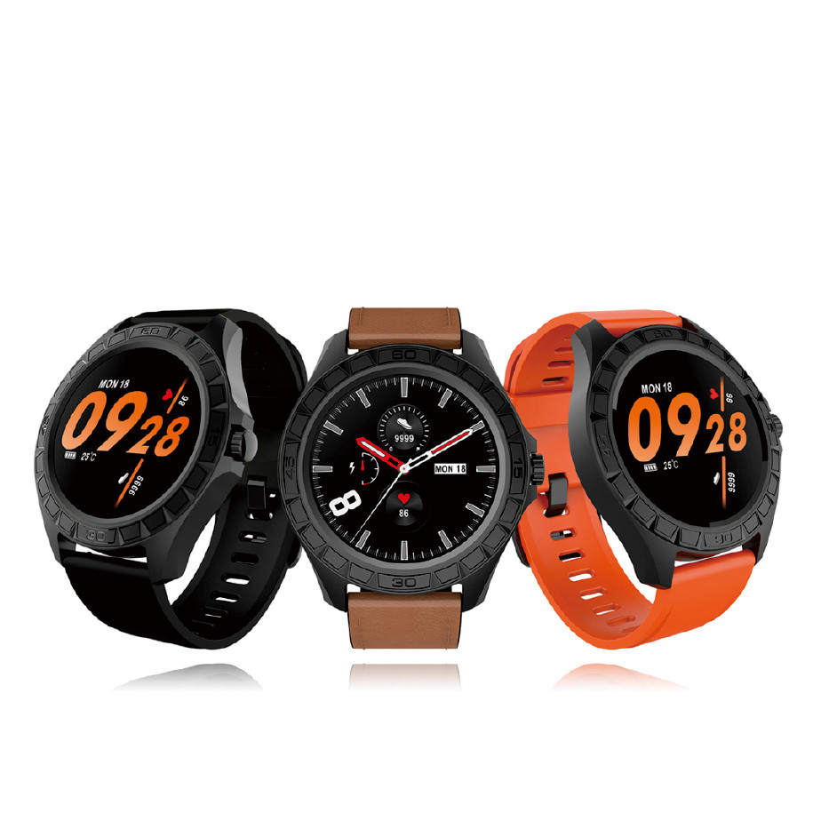 1.3”全圓全觸顯示屏 獨(dú)家個(gè)性化精美表盤,且APP能推送 24 H連續(xù)實(shí)時(shí)動(dòng)態(tài)心率 300mAH大容量電池,續(xù)航時(shí)間達(dá)15天以上 支持23種多運(yùn)動(dòng)模式 支持17國(guó)的本地化UI語言 支持IP68防水級(jí)別 搭配皮質(zhì)表帶和TPU表帶,兼顧商務(wù)和運(yùn)動(dòng)風(fēng)格 可接受為客戶免費(fèi)定制表盤,彩盒包裝,表帶顏色,表扣鐳雕LOGO內(nèi)容